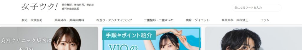 女子ツクは、美容整形・美容外科・美容皮膚科、脱毛・医療脱毛、若返り・アンチエイジング、二重整形・まぶた、痩身・ダイエット、審美歯科・矯正をわかりやすく紹介する、美容医療の比較・解説メディアです。